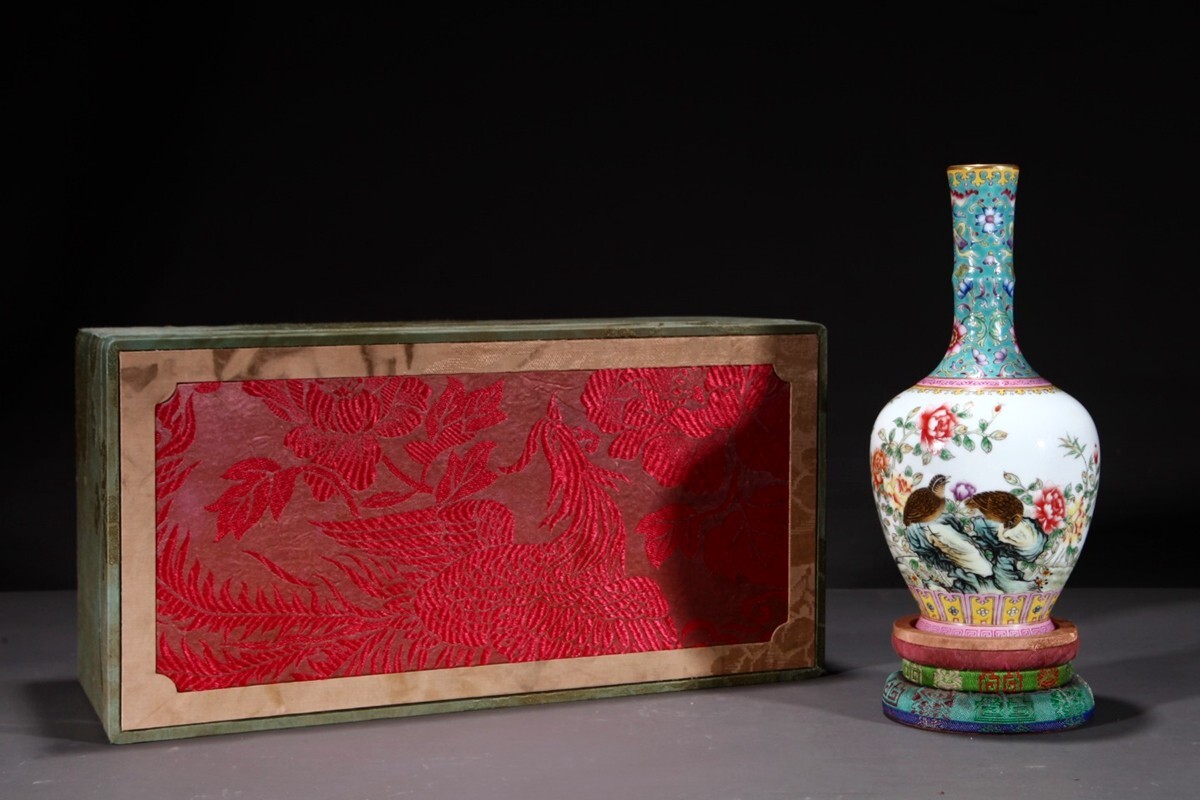- 「清 雍正御製 陶磁器 琺瑯彩花鳥紋 賞瓶」染付 置物 擺件 古賞物 中国古美術 旧蔵出