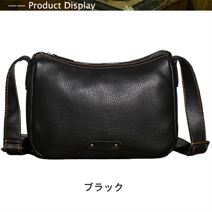 - 男女兼用 メンズ 牛革 ショルダーバッグ 斜めがけ メッセンジャーバッグ 本革 レザーバッグ おしゃれ かばん bg0676 ブラック