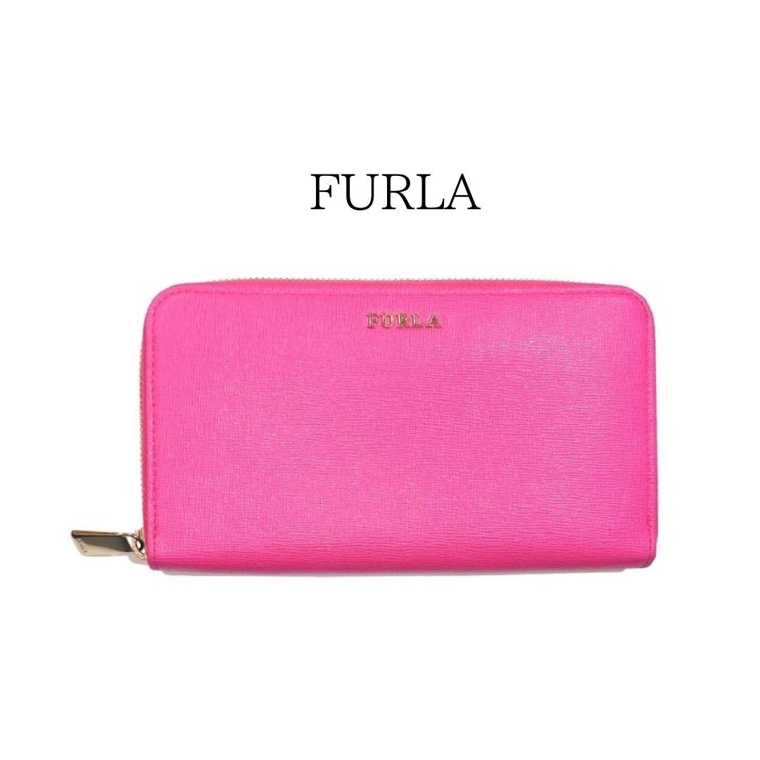 - 【鑑定済】FURLA フルラ 長財布 ラウンドファスナー バビロン BABYLON レザー ピンク【送料無料】