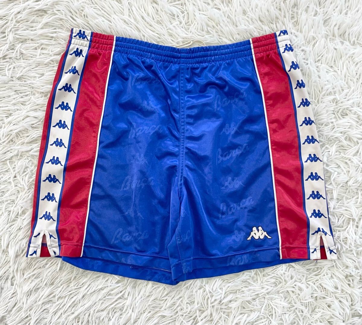> 希少 90s FCバルセロナ バルサ レトロ 光沢 サッカーパンツ ユニフォームパンツ メンズ Oサイズ Kappa カッパ ビンテージ