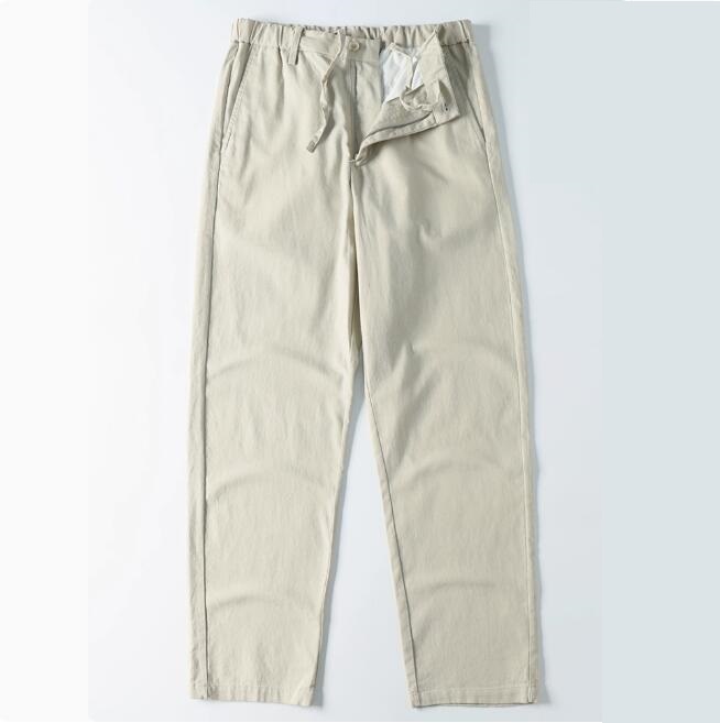 - 2XL新品 上質綿麻混 イージーパンツ メンズ サマー スラックス ズボン 薄手 通気性 春夏 テーパード ウエストゴム ロングパンツ/カーキ