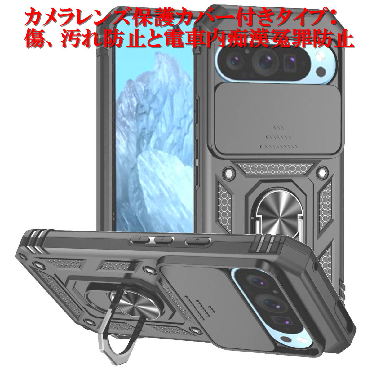 > G 黒 Google Pixel 9 / Pixel 9 Pro ケース 本体 カバー 指リング 画面 保護 守る グーグル ピクセル 米軍 衝撃 頑丈 スタンド ホルダー