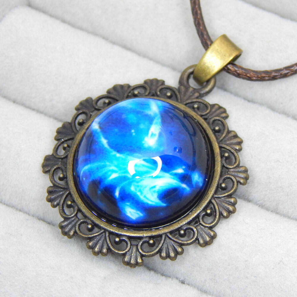 - 残り1点★新品★厳選 希少 星座 アンティーク風 ガラス玉 夜光 蓄光 暗闇で光る ネックレス 男女兼用 ペンダントネックレス さそり座
