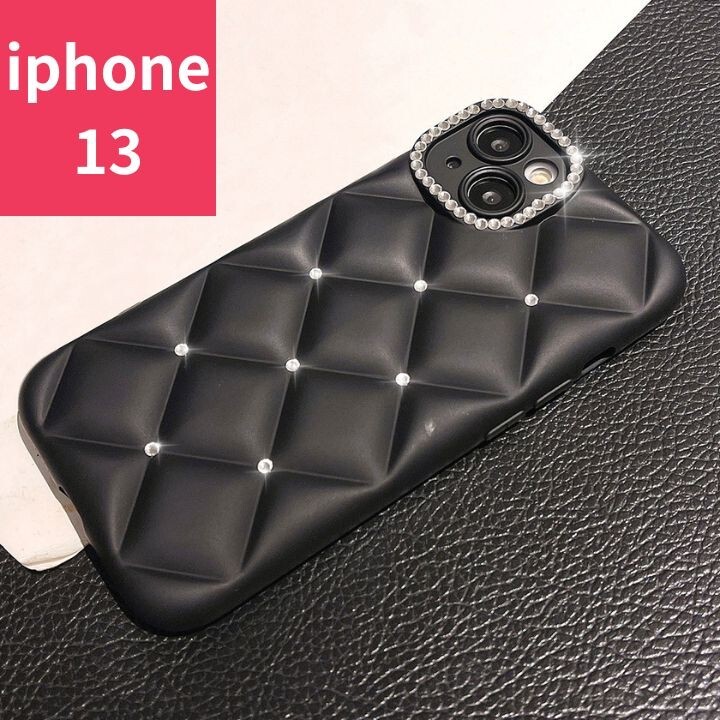 > 大人気 iPhone13 スマホケース ダイヤモンド型 キルティング ブラック