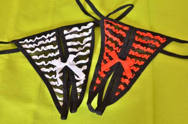 - 『送料無料』★穴あき★メッシュ★ふりふり★ストレッチ素材★Tバックショーツ★2枚組★白&赤★Mサイズ★