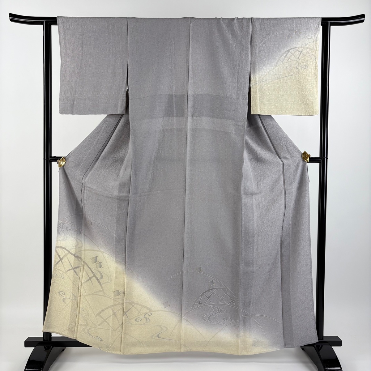 > 訪問着 身丈162cm 裄丈62.5cm S 単衣 千鳥 流水 金彩 ぼかし 灰紫 正絹 秀品 【中古】