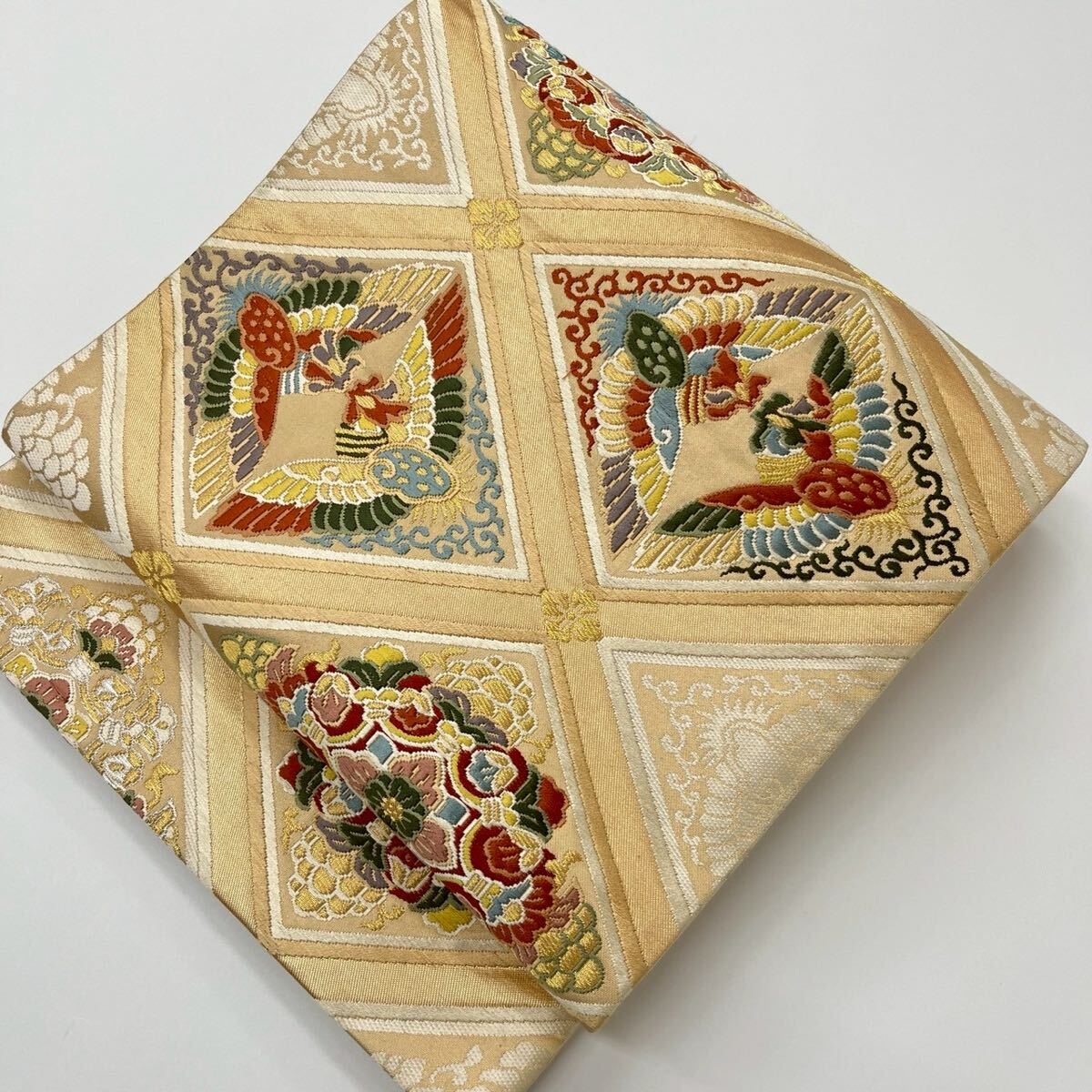 - 袋帯 唐織 菱形 正倉院文様 鳳凰 正絹 W-2051