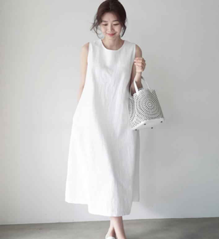 - 夏物ワンピース 袖なしワンピース レディース ノースリーブワンピース 夏 ノースリーブワンピース M ホワイト