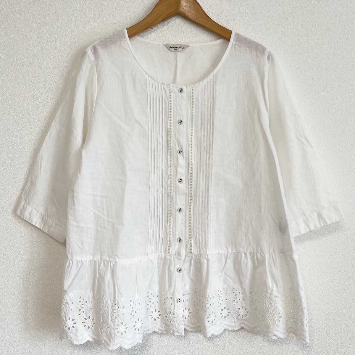 > SM2 サマンサモスモス 7分袖 透け感 綿麻 レース ブラウス M 白 レディース
