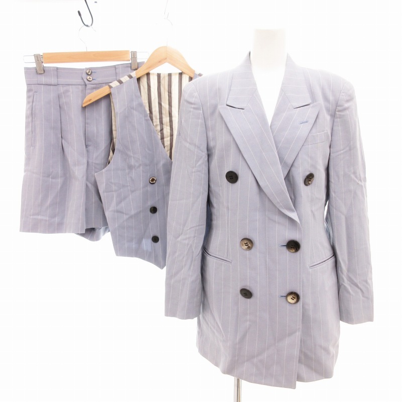 > ロペ ROPE 3Pスーツ セットアップ テーラードジャケット ベスト ハーフパンツ ショーツ ストライプ ウール ダブル 6B M ライトブルー