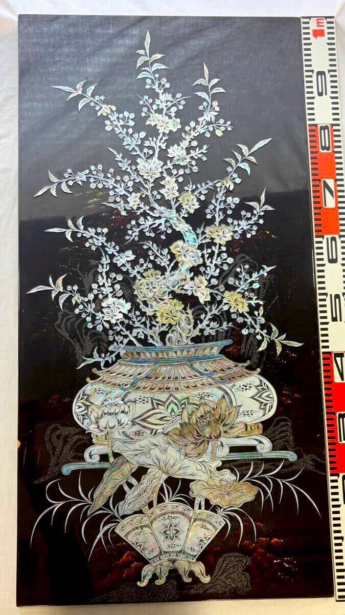 - 螺鈿細工 漆塗り 壁飾り 花器?壺?デザイン 大型 工芸美術品 黒漆塗り 漆芸 花 貝 シェル 日本 中国 アジア 古美術品 送料無料