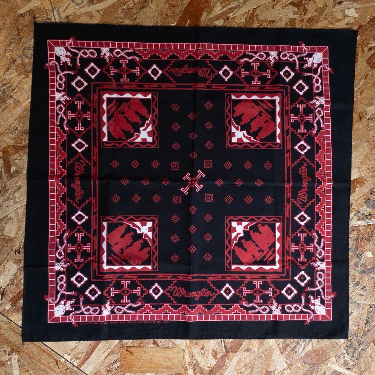 - 送料無料 Vintage バンダナ Wlangler ラングラー 大判 ハンカチ アメリカ仕入れ 幾何学模様 コットン100% 雑貨 ヴィンテージ A1713