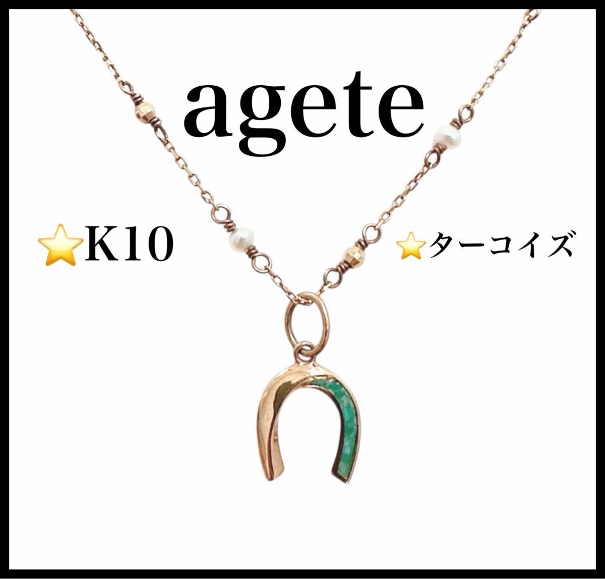 - agete K10 ターコイズ ネックレス ホースシュー 馬蹄型 YG