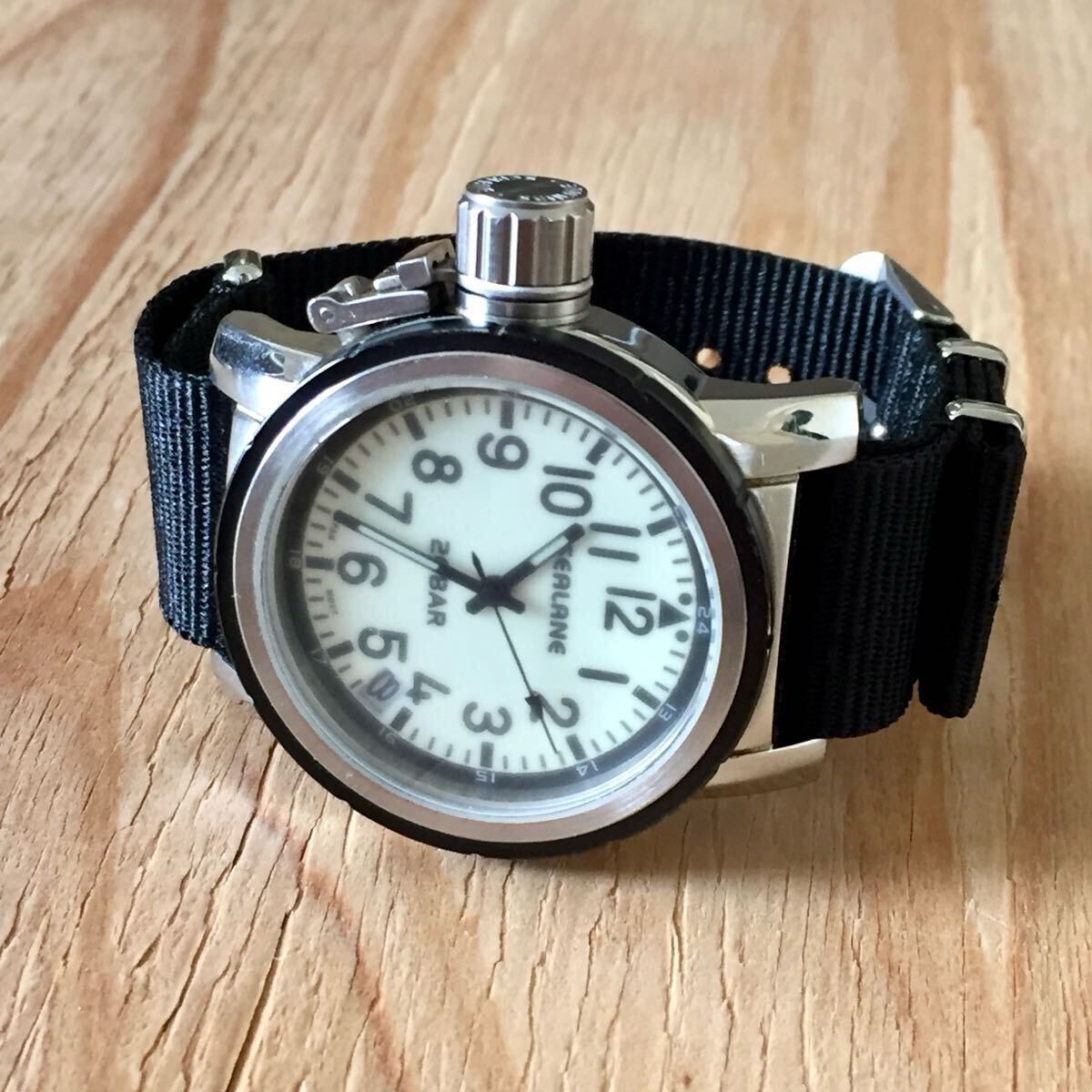 > 美品 SEALANE Military watch シーレーン ミリタリーウォッチ 腕時計 日本製 スライド式リューズガード 電池式 3針 カレンダー クォーツ