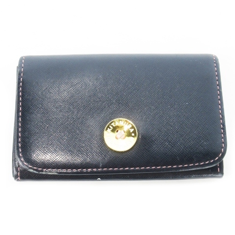 > キタムラ Kitamura カードケース 名刺入れ レザー 革 ステッチ 配色 バイカラー ボタンモチーフ 紺 ネイビー /CK29 ■GY18 レディース