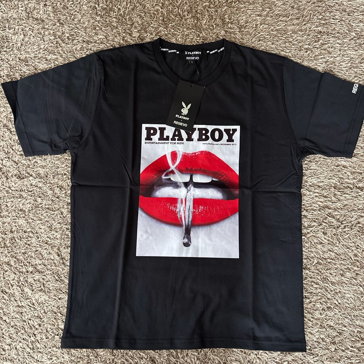 - 【新品】PLAYBOY×REGIEVO メンズ コラボTシャツ L ブラック 黒 ブラック Tシャツ tee 半袖Tシャツ