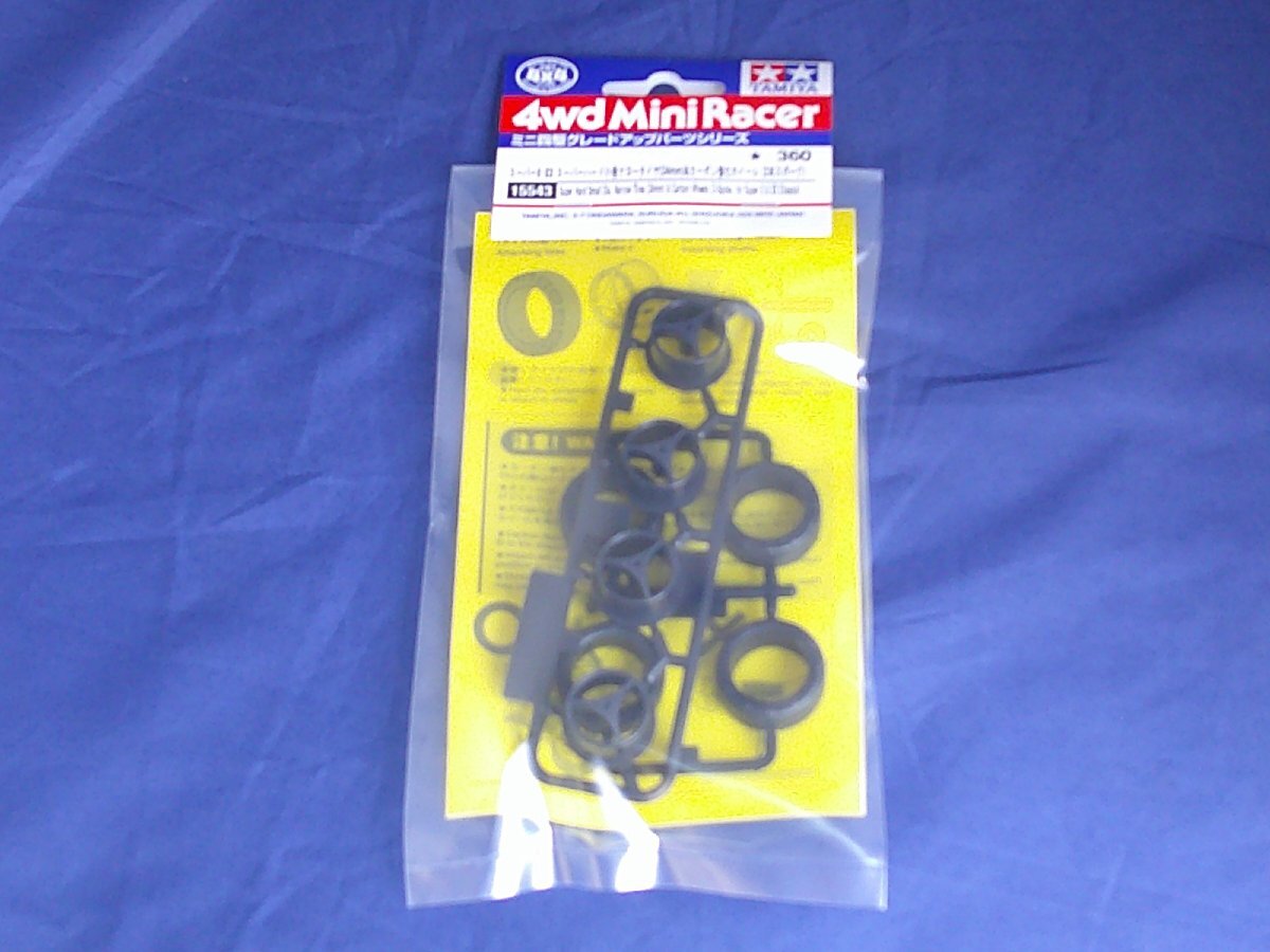 タミヤITEM15543 3本スポークデザインのカーボン強化ホイールと、スーパーハード小径タイヤ(24mm)を4本ずつ、1台分セット