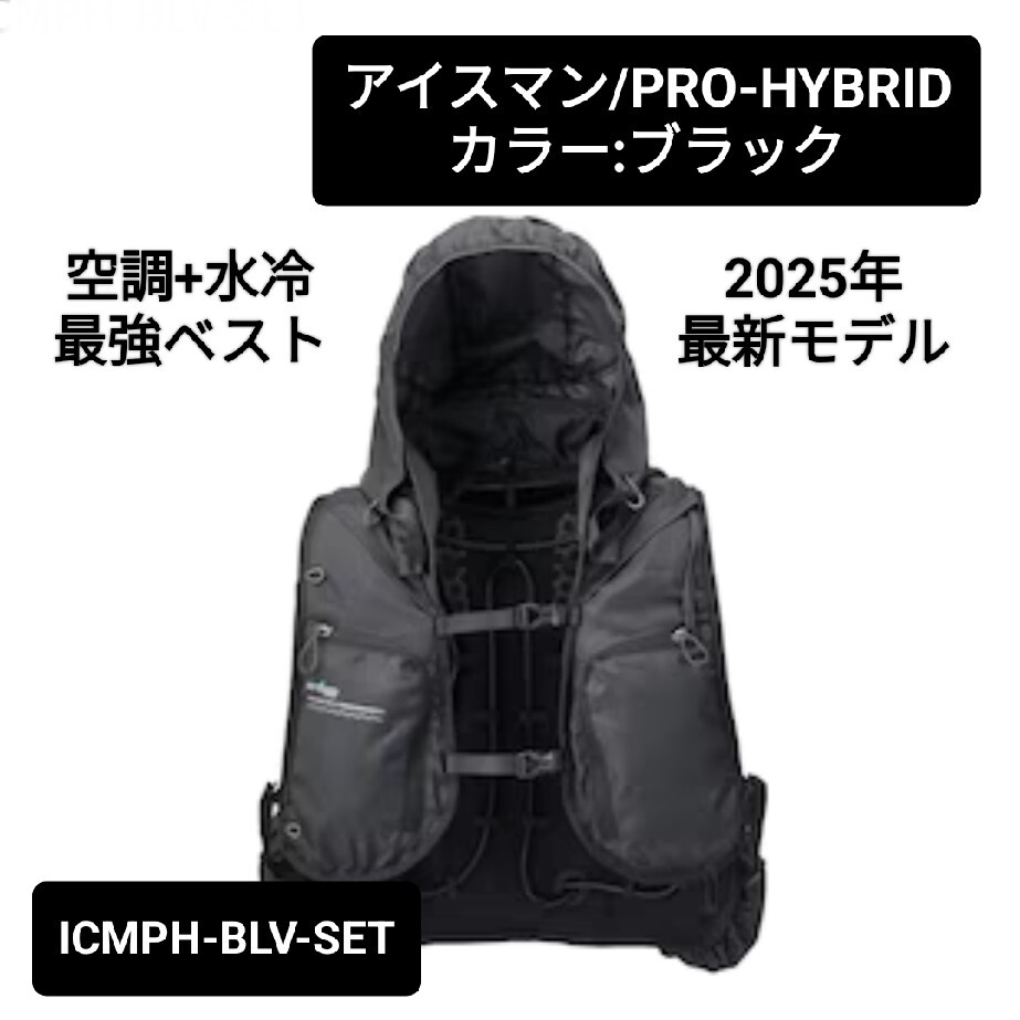 > 【アイスマンベスト/PRO-HYBRID】ブラックカラー/2025モデル/ICMPH-BLV-SET/プロハイブリッド/水冷服/ボトル、バッテリー付きセット/