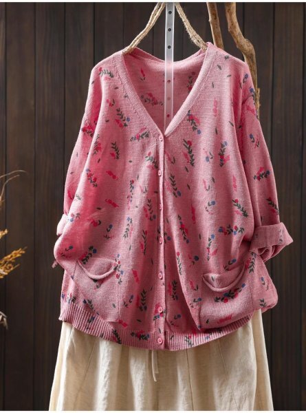 > 25zy サマーニット レディース トップス カーディガン ラフ タッチニット チュニック トップス ナチュラル 冷房紫外線対策 花柄 サラサラ2