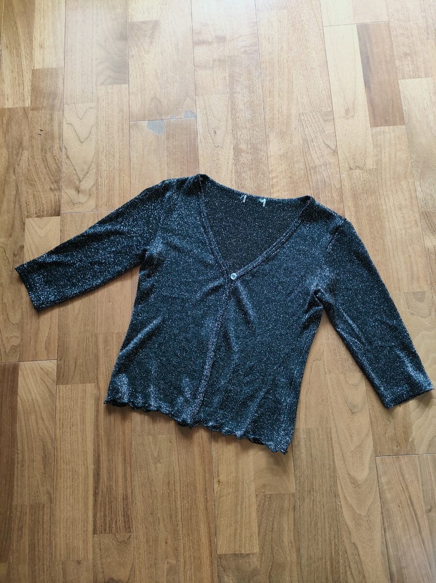 - オーズ レディース 七分袖 ラメ カーディガン ブラック Sサイズ相当