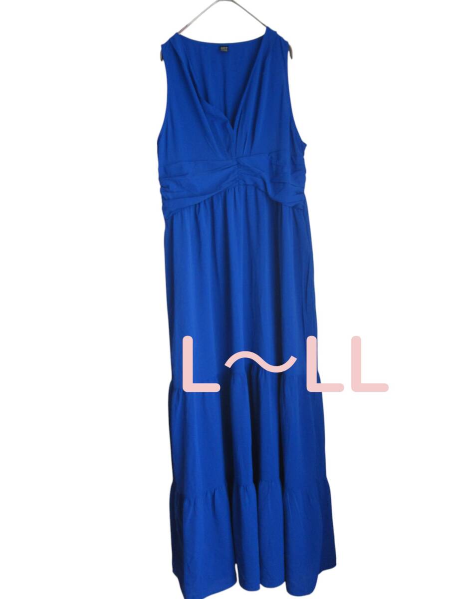 > 送料無料 F70 美品 【XL・L~LL】 ブルー シフォン ロング ワンピース 大きいサイズ ゆうパケットプラス