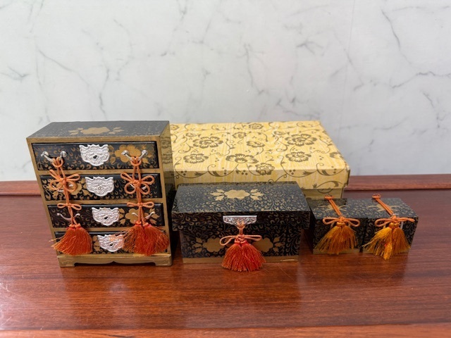 - 古い雛道具 ひな道具 金蒔絵 三荷揃 雛飾り