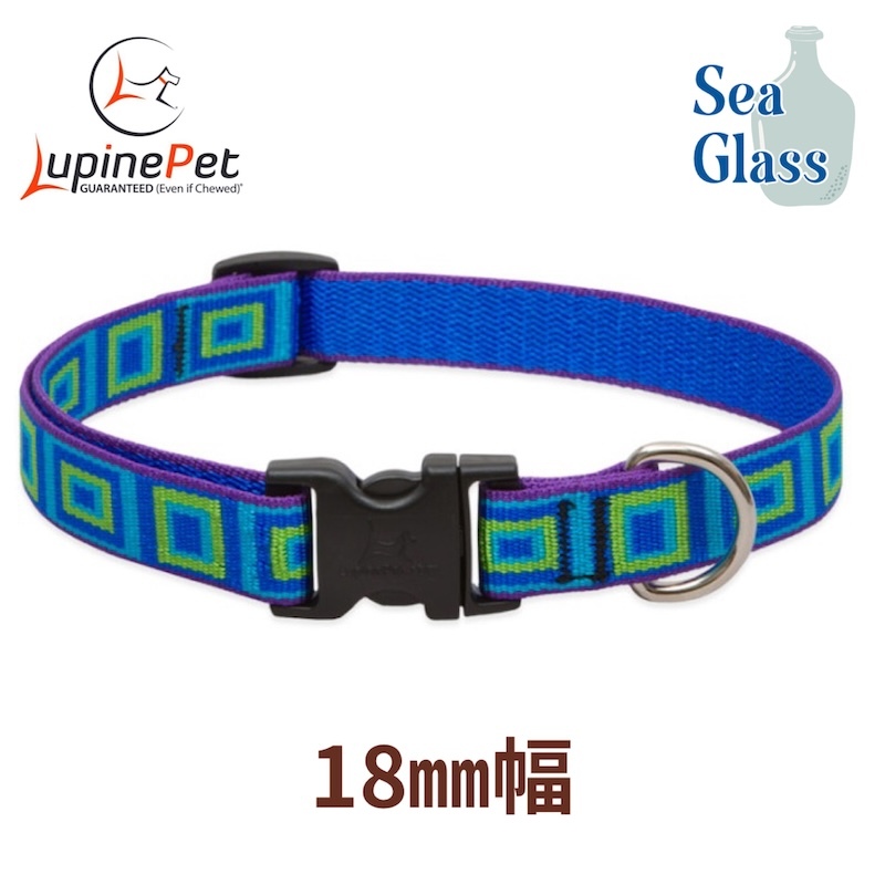 - ワンタッチ首輪・Mサイズ・18mm幅シーグラス柄 33-56cm LUPINEルパイン アメリカ製 軽量丈夫 中型犬 アジャスタブル