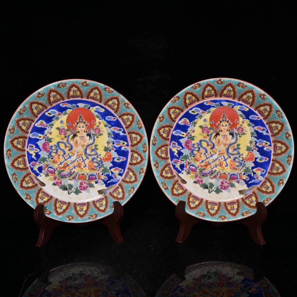 > 『館蔵珍品 清 雍正年製款 古陶瓷品 琺瑯彩 描金 觀音盤一對 陶藝』稀少珍蔵品 古賞物 貴重物品 収蔵品 中国古美術 時代物 古董品