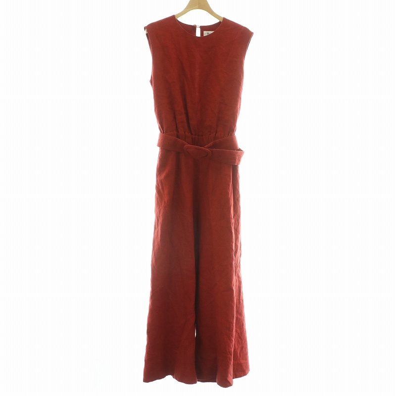 - ブルーバードブルバード BLUEBIRD BOULEVARD オールインワン サロペット 麻 リネン ノースリーブ ベルト付き M 赤 レッド