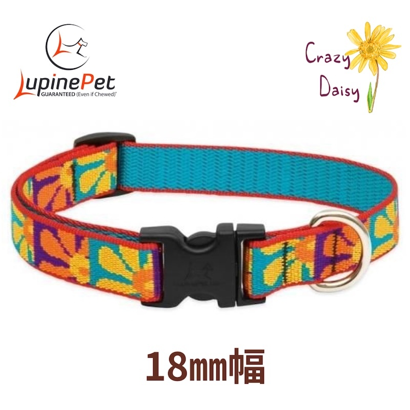 > ワンタッチ首輪・Mサイズ・18mm幅 クレイジーデイジー柄 33-56cm LUPINEルパイン アメリカ製 軽量丈夫 中型犬 アジャスタブル