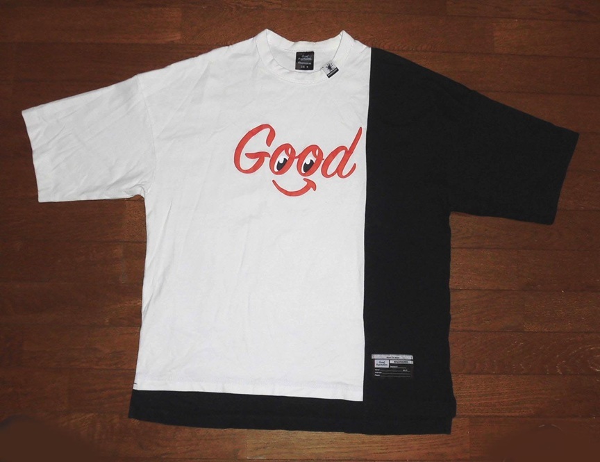 - GU X MIHARAYASUHIRO ジーユー ミハラヤスヒロ コラボ Tシャツ 5分袖 オーバーサイズ ビッグT 厚手コットン WHT-BLK M 使用少美品/三原康裕