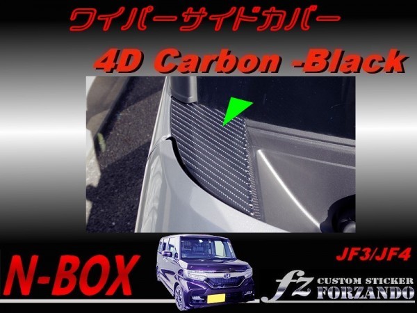 - N-BOX ワイパーサイドカバー 4Dカーボン調 ブラック 車種別カット済みステッカー専門店 fz JF3 JF4 custom