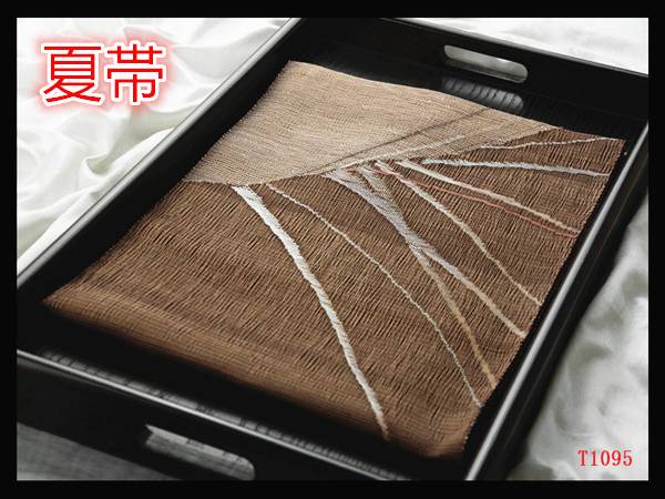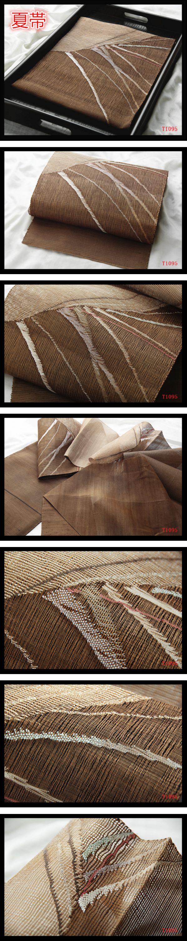 - 蔵【T1095】厳選逸品 夏帯 枯茶色亜麻色 透かし 正絹高級美術名古屋帯 ◇検◇簪着物袋帯和装小物帯締め