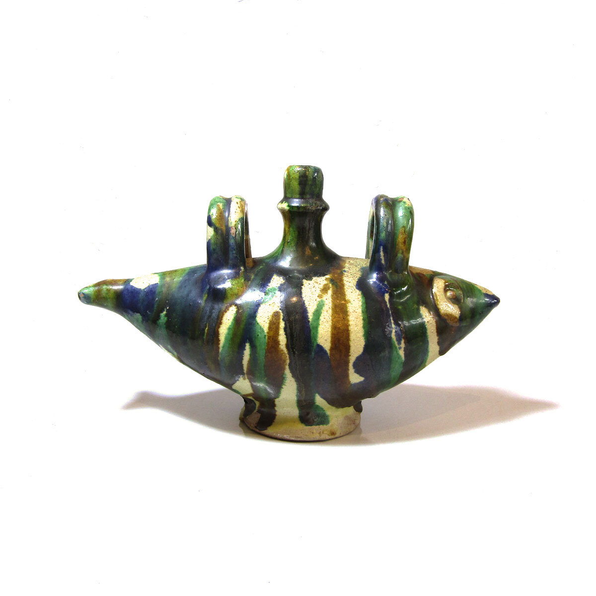> イタリア セラミック アンティーク フラスコ 魚 フィッシュ 陶器 釉薬 19th Century Italian Ceramic Fish-Shaped Antique Flask