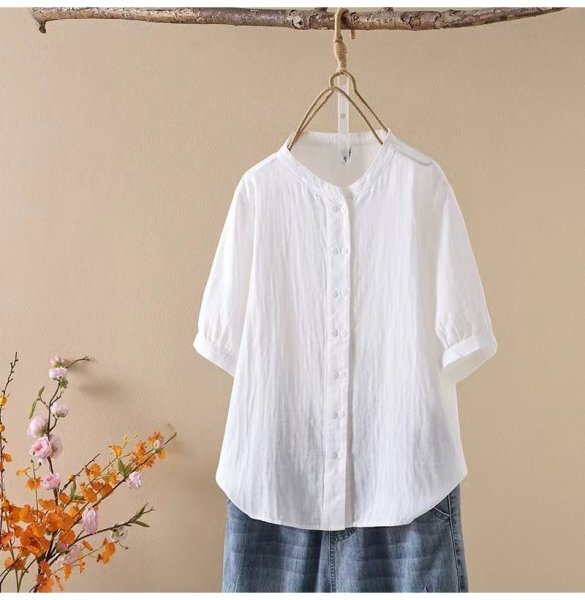 - 25 zy 半袖 チュニック トップス ダブルガーゼ 綿100% コットン サラサラ 通気性肌触り抜群 ゆったり ホワイト