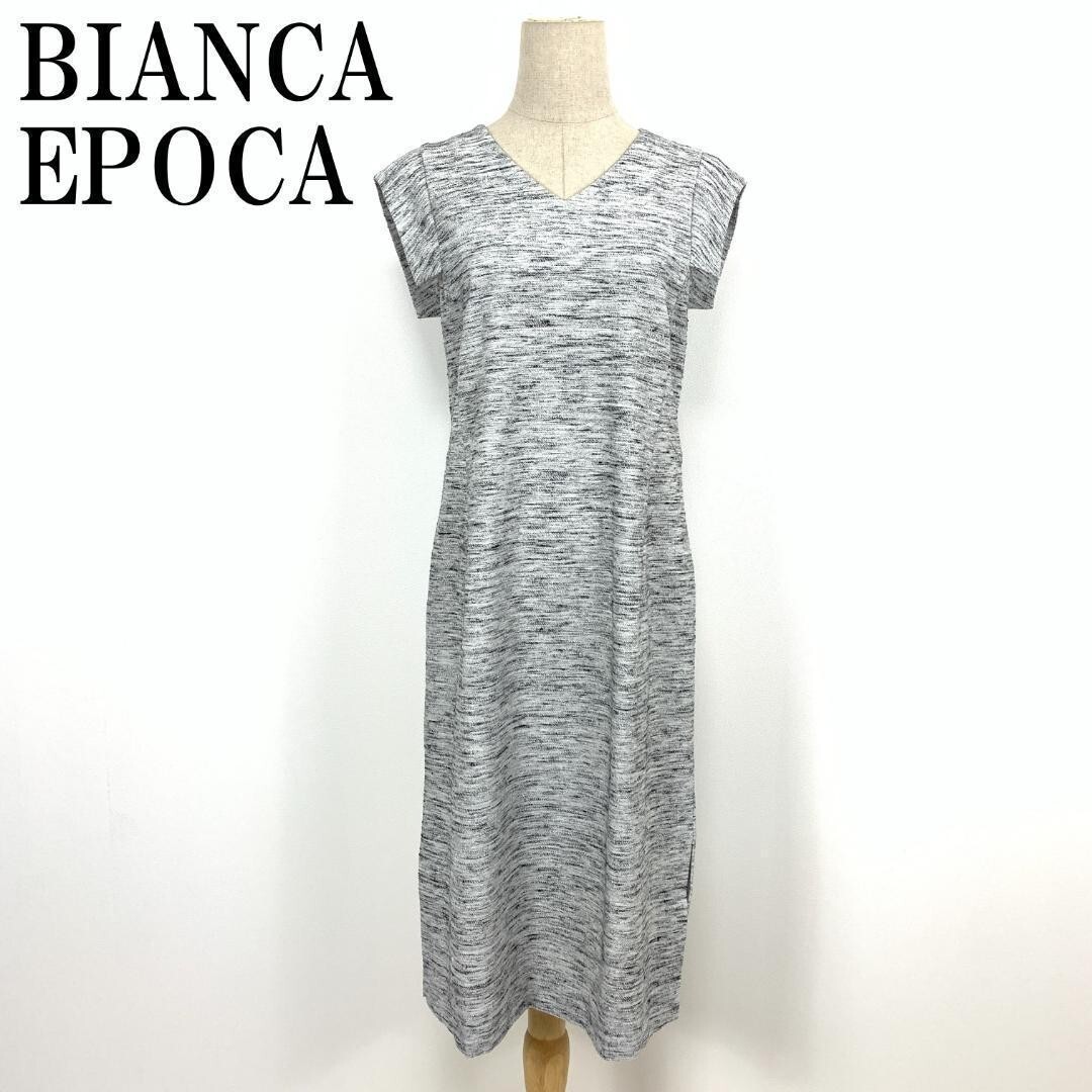 > LA6327 ビアンカエポカ Vネックロングワンピース グレー コットンBIANCA EPOCA カジュアル 両サイドスリット 36