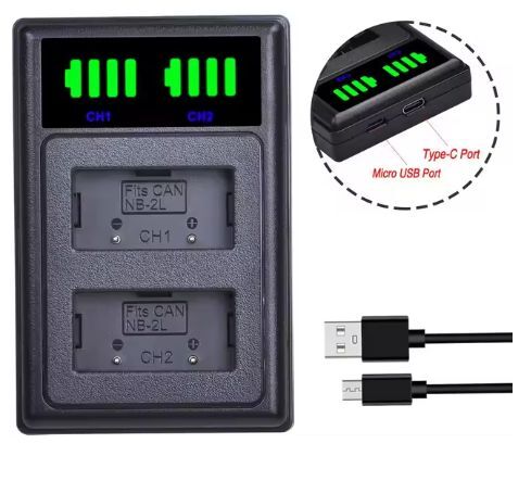 - 送料無料 バッテリー2個同時充電可 キャノン CANON NB-2L NB-2LH CBC-NB2 CB-2LW USB充電器 USB付 LCD 互換品