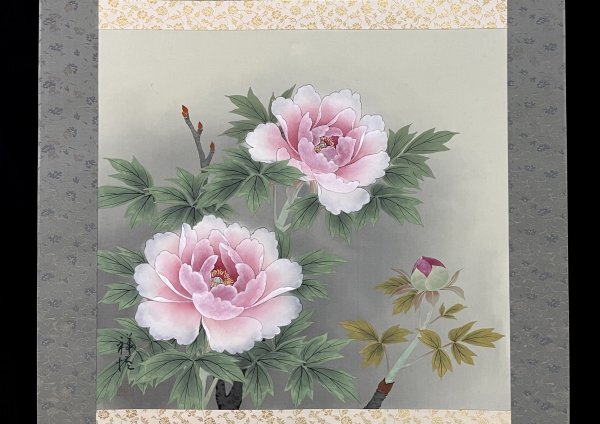 - HM0907[真作]塩田祥恒「牡丹」掛軸 絹本 肉筆 花図 /共箱 日本画 絵画 美術年鑑掲載