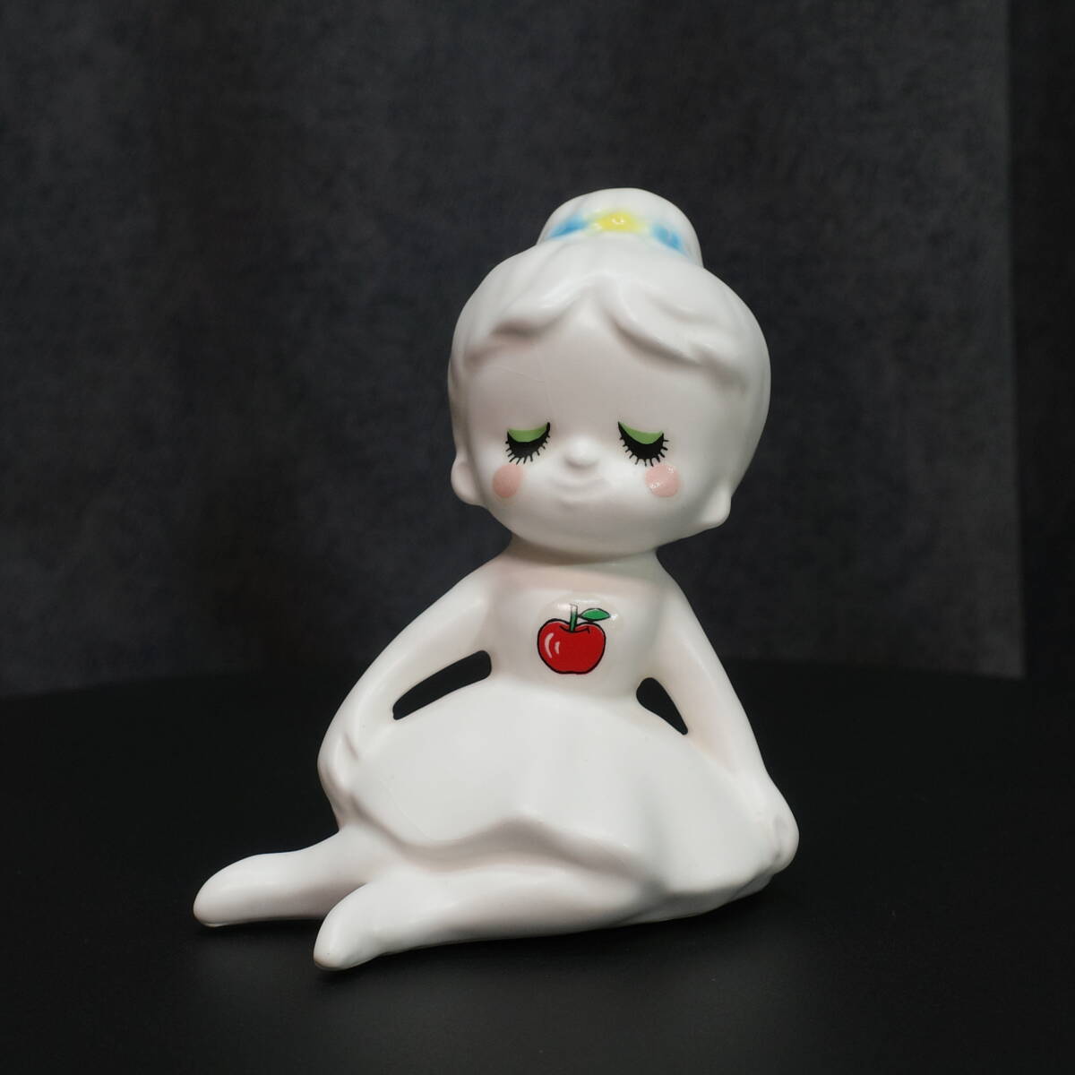 - [雑貨インテリア] 難あり バレリーナ かわいい女の子 横座り人形 貯金箱 陶器製 ホワイト