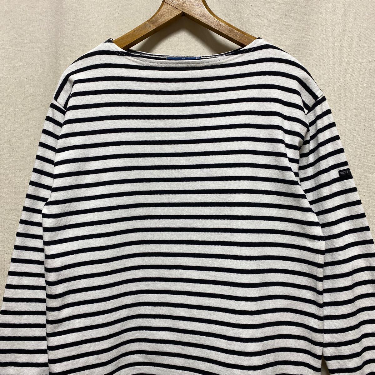 - 美品 フランス製 セントジェームス ウエッソン ボーダー ボートネックTシャツ ホワイト×ブラック 5 バスクシャツ SAINT JAMES 長袖Tシャツ