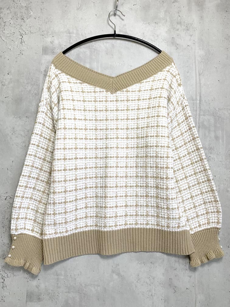 > ゆうパケットOK axes femme アクシーズファム IM131X20 Vネックツイードニット プルオーバー sizeF/ベージュ ■■