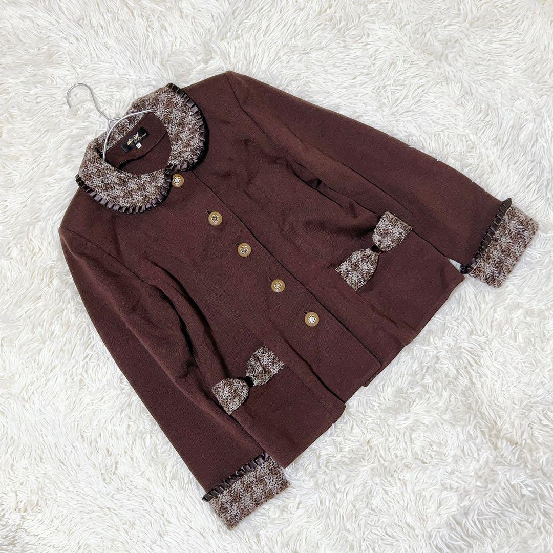 - 《miss k》 (L) リボンプリーツニットジャケット ツイード リボン