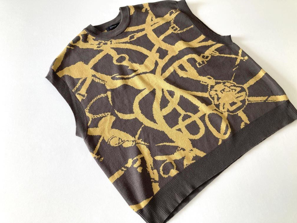 > 美品 RAGEBLUE レイジブルー バブリー柄 ニット ベスト sizeL/グレー ◇■