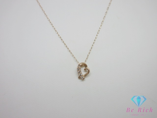 > K10 PG ダイヤモンド 付 ハートモチーフ デザイン ネックレス ペンダント 10金 ピンク ゴールド メレ 宝石 ジュエリー 【中古】th13119