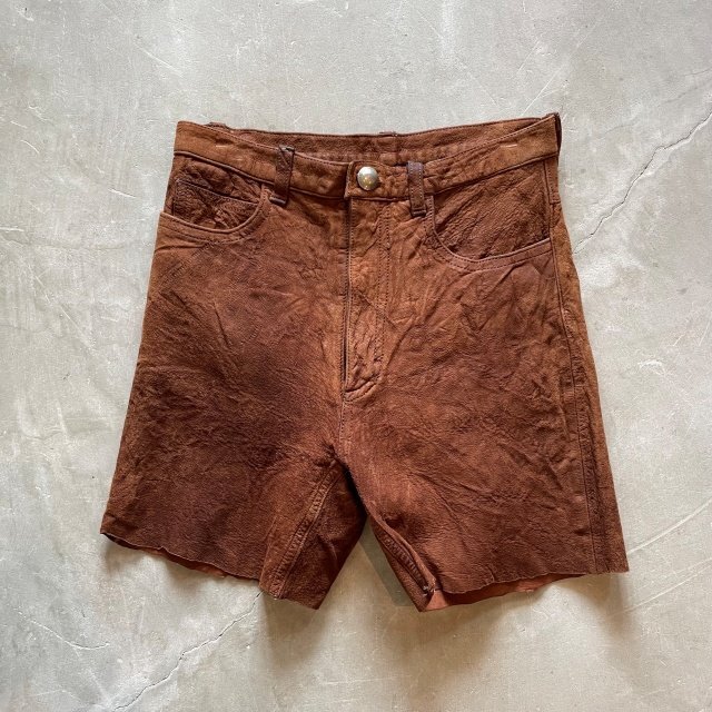 > 【W27-W28】UNKNOWN カットオフ ディアスキン ショートパンツ 茶■ビンテージ アメリカ古着 レディース ショーツ レザーパンツ 革パン