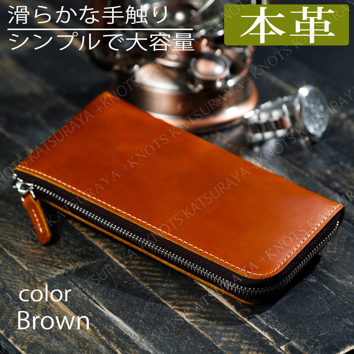 - 本革財布 薄い財布 L字ファスナー財布★Vブラウン★本革長財布 メンズ長財布 レディース長財布 薄型財布 シンプルスマート 牛革レザーa225