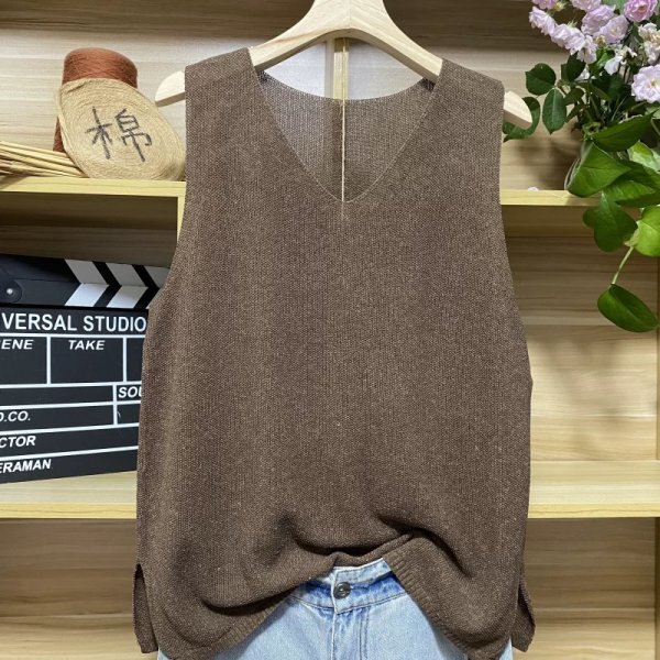 > 25zy サマーニット ノースリーブ トップス 高質 ラフ 麻タッチニット チュニック ナチュラル 麻混 サラサラ 涼感 Vネック10