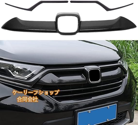 > ホンダ CR-V フロントバンパー フロントグリル ガーニッシュ メッキモール 外装パーツ Honda 新型 CRV アクセサリー ABS 3P【カーボン調】