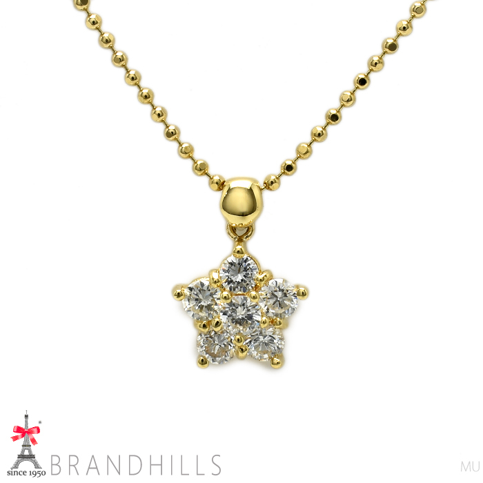 > ダイヤモンド 0.30ct ネックレス K18金 750YG イエローゴールド スターモチーフ 2.5g 極美品