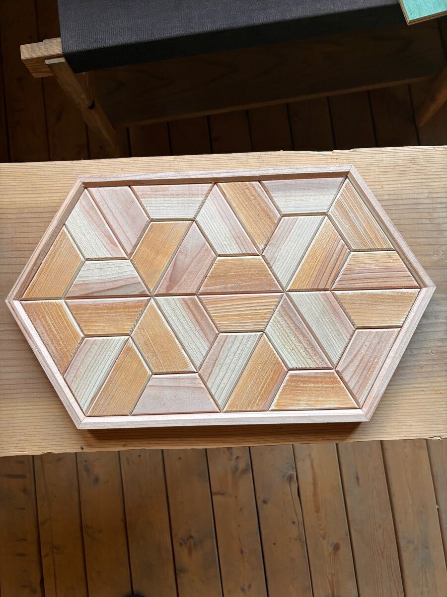 - ハンドメイド ウッドトレイ ウッドボード 寄木 トレイ お盆 ウォールインテリア